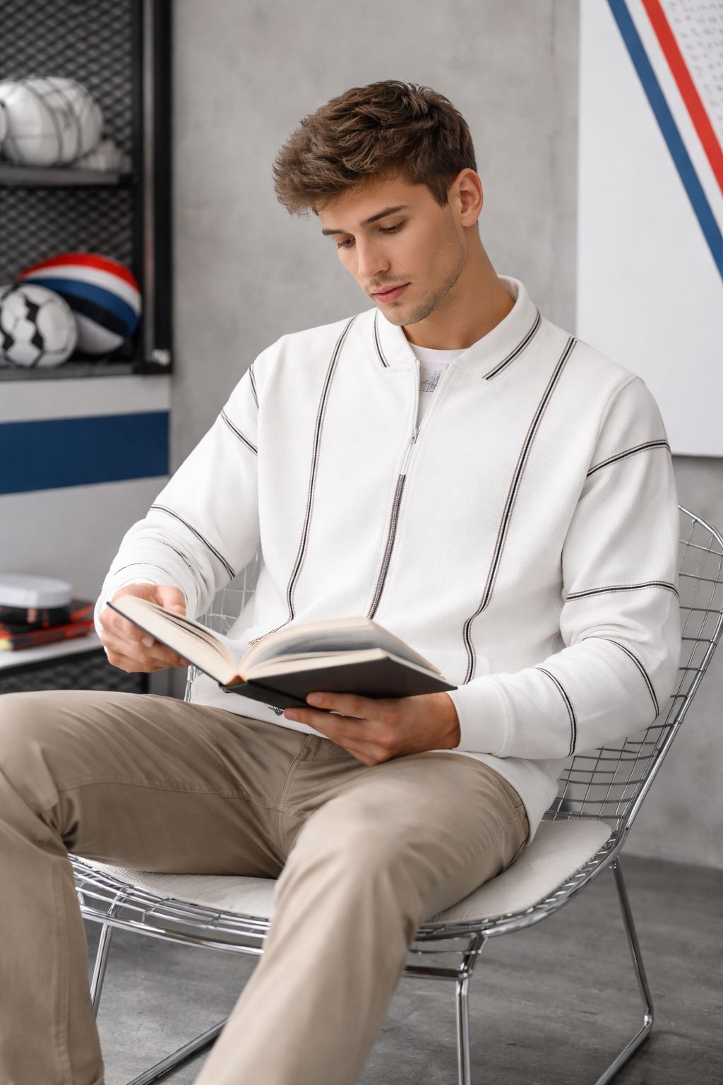 New Long Sleeved Casual High-end Polo Shirt – Off-White And Blue Line